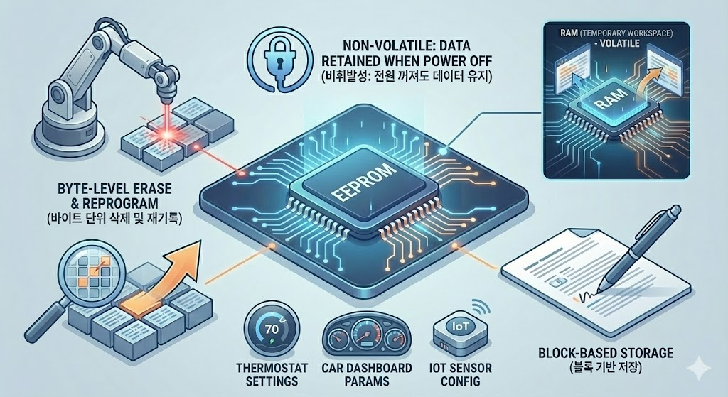 🔐 EEPROM = 데이터 저장, 느리지만 오래 보존